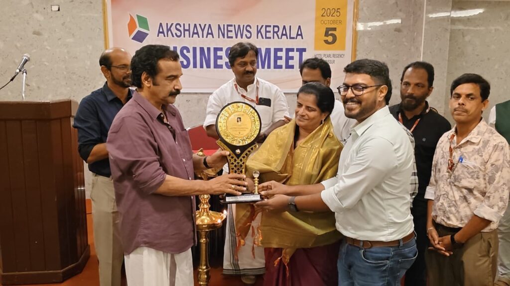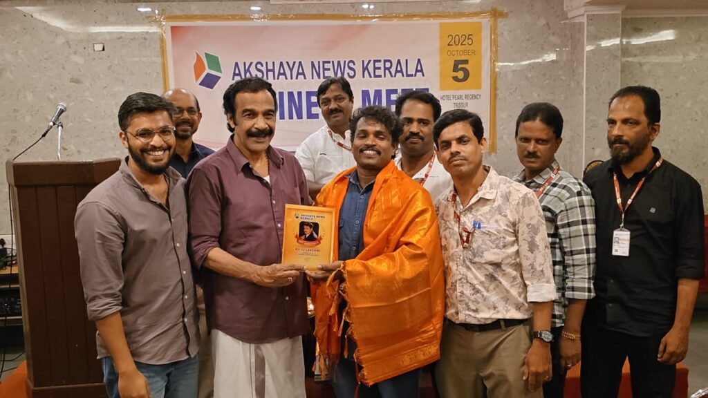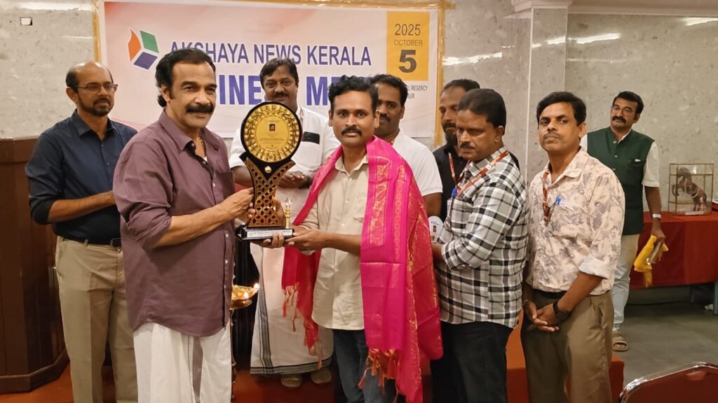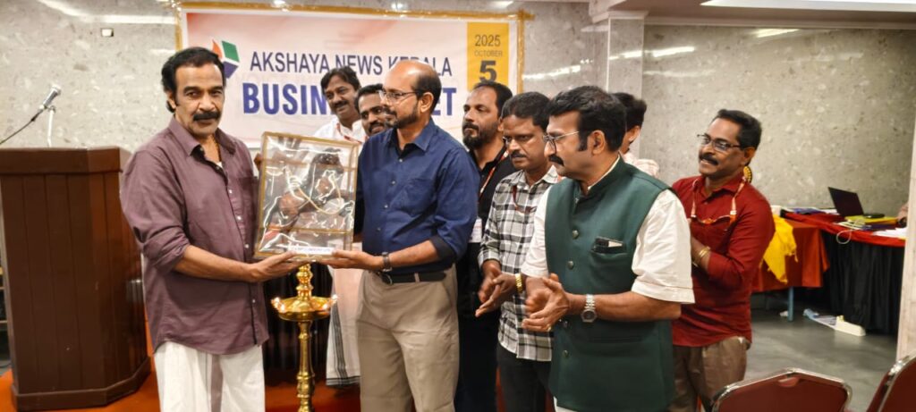 കടലിലെ പ്ലാസ്റ്റിക് മാലിന്യം നീക്കാനുള്ള ശ്രമത്തിൽ അന്താരാഷ്ട്ര അംഗീകാരം ലഭ്യമായ പ്രമുഖ പരിസ്ഥിതി പ്രവർത്തകൻ ബൈജു ലക്ഷ്മിയെയും അക്ഷയ ന്യൂസ് കേരള ബിസിനസ് മീറ്റിൽ ജയരാജ് വാര്യർ ആദരിച്ചു .