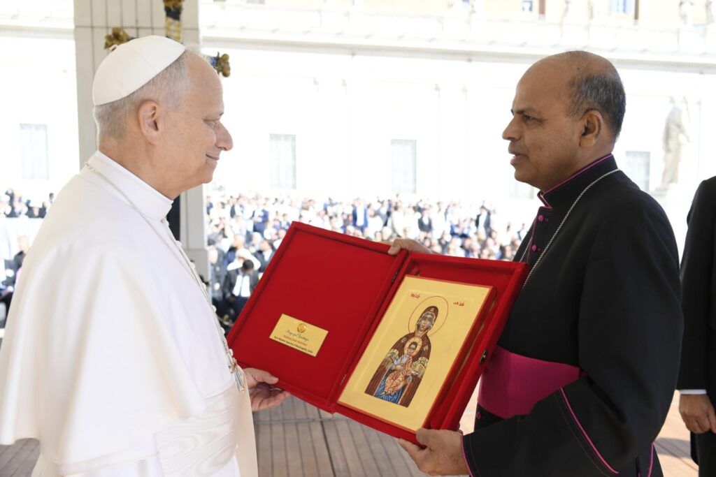 വത്തിക്കാൻ :പരിശുദ്ധ പിതാവ് മാർ ലെയോ പതിനാലാമൻ പാപ്പയെ സന്ദർശിച്ച കാഞ്ഞിരപ്പള്ളി രൂപതാധ്യക്ഷൻ മാർ ജോസ് പുളിക്കൽ രൂപത മദ്ധ്യസ്ഥയായ പരിശുദ്ധ കന്യാമറിയത്തിൻ്റെ ഐക്കൺ അദ്ദേഹത്തിന് സമ്മാനിച്ചു ,