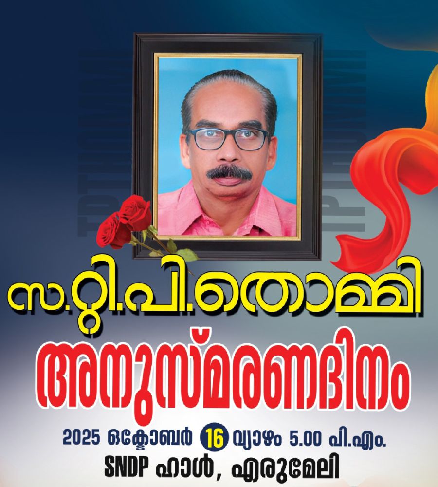 റ്റി.പി തൊമ്മി അനുസ്മരണ യോഗം ഇന്ന് അഞ്ചിന് എരുമേലി എസ്എൻഡിപി ഹാളിൽ