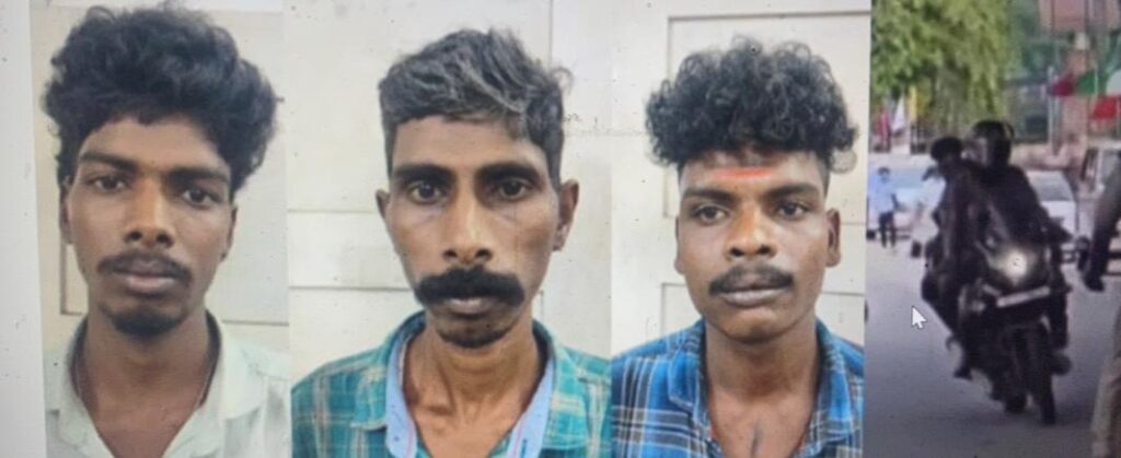 കോട്ടയം: പാലായില് രാഷ്ട്രപതിയുടെ സന്ദര്ശനത്തിനിടെ ഗതാഗത നിയന്ത്രണം ലംഘിച്ച് ബൈക്കിൽ കറങ്ങിയ മൂവർസംഘം പിടിയിൽ. അതിരമ്പുഴ സ്വദേശി ജിഷ്ണു രതീഷ്, കിടങ്ങൂര് സ്വദേശി കെ.എം. സതീഷ്, കോതനല്ലൂര് സ്വദേശി സന്തോഷ് ചെല്ലപ്പന് എന്നിവരാണ് പിടിയിലായത്.