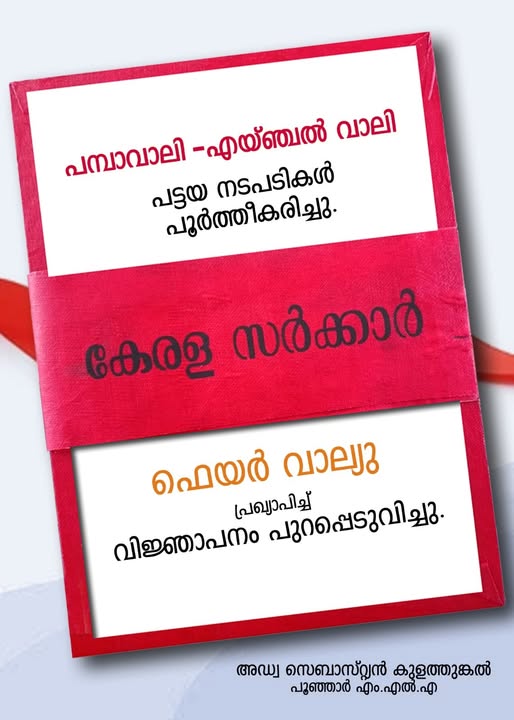 എരുമേലി : എരുമേലി തെക്ക് വില്ലേജിലെ പമ്പാവാലി-എയ്ഞ്ചൽ വാലി പ്രദേശങ്ങളിൽ രണ്ടായിരത്തോളം വരുന്ന കൈവശ കൃഷിക്കാർക്ക് പട്ടയം നൽകിയതുമായി ബന്ധപ്പെട്ട് അവശേഷിച്ചിരുന്ന ഏക നടപടിക്രമമായ ഭൂമിയുടെ ന്യായവില നിശ്ചയിച്ച് ഉത്തരവായതായി അഡ്വ. സെബാസ്റ്റ്യൻ കുളത്തുങ്കൽ എംഎൽഎ അറിയിച്ചു. എരുമേലി തെക്ക് വില്ലേജിൽ ബ്ലോക്ക് നമ്പർ 82 ൽ ഉൾപ്പെട്ടവരുന്ന റീസർവ്വേ നമ്പർ 1 മുതൽ 188 വരെയുള്ള സർവ്വേ നമ്പറുകളിൽ പെട്ട 1620 പട്ടയ ഉടമകളുടെ ഭൂമിക്കാണ് ഫെയർ വാല്യൂ നിശ്ചയിച്ച് ഗസറ്റ് നോട്ടിഫിക്കേഷൻ പുറപ്പെടുവിച്ചിട്ടുള്ളത്. സങ്കീർണമായ ഈ നടപടിക്രമം വളരെ ശ്രമകരമായിട്ടാണ് പൂർത്തീകരിച്ചിട്ടുള്ളത് എന്ന് എംഎൽഎ കൂട്ടിച്ചേർത്തു. പമ്പാവാലിയിലും, എയ്ഞ്ചൽ വാലിയിലും പട്ടയം കിട്ടിയ വസ്തു ഉടമസ്ഥർക്ക് ഇനി അവരുടെ ഭൂമികൾ ക്രയവിക്രയം നടത്തുകയോ, ഭാഗം ചെയ്യുകയോ, ഈട് വയ്ക്കുകയോ ഒക്കെ ചെയ്യുന്നതിന് കഴിയുന്നതാണ്. ന്യായവില കൂടി അംഗീകരിച്ചതോടെ പമ്പാവാലി,ഏഞ്ചൽ വാലി പ്രദേശങ്ങളിലെ ഭൂമിയുടെ പട്ടയ വിതരണവുമായി ബന്ധപ്പെട്ട എല്ലാ നടപടിക്രമങ്ങളും പൂർത്തീകരിച്ചിരിക്കുകയാണ്. ഇനി സ്ഥലത്തില്ലാത്തവരുടേതും, ചില അവകാശ തർക്കങ്ങൾ ഉള്ളതുമായ ആളുകളുടേതും മാത്രമാണ് പട്ടയം നൽകാൻ അവശേഷിച്ചിട്ടുള്ളത്.
