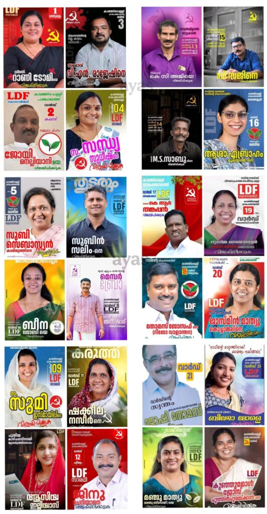 കാഞ്ഞിരപ്പള്ളി : കാഞ്ഞിരപ്പള്ളി പഞ്ചായത്തിലെ ഇടതുപക്ഷ ജനാധിപത്യ മുന്നണി സ്ഥാനാർത്ഥികൾ വാർഡും സ്ഥാനാർത്ഥികളും 1. റാണി ടോമി 2. ജോയി നെല്ലിയാനി 3. വി എൻ രാജേഷ് 4. സന്ധ്യ സുധീഷ് 5. സുബി സെബാസ്റ്റ്യൻ 6. ബീനാ ജോബി 7. സുബിൻ സലീം 8. ബി ആർ അൻഷാദ് 9. സുമി ഇസ്മായിൽ 10. ആസിയ ഇല്യാസ് 11. ഷക്കീല നസീർ 12. ജിനു ചെറിയാൻ 13. കെ സി അജി 14. എം എസ് സാബു 15. വി സജിൻ 16. ആശ എബ്രഹാം17. കെ ആർ തങ്കപ്പൻ18. റിജോ വാളാന്തറ19. ലൂസിമ്മ സെബാസ്റ്റ്യൻ20. ജാസ്മിൻ മാത്യു21. ജോഷി തോമസ്22. മഞ്ജു മാത്യു23. ബിജോ മോൾ24. കുഞ്ഞുമോൾ ജോസ്