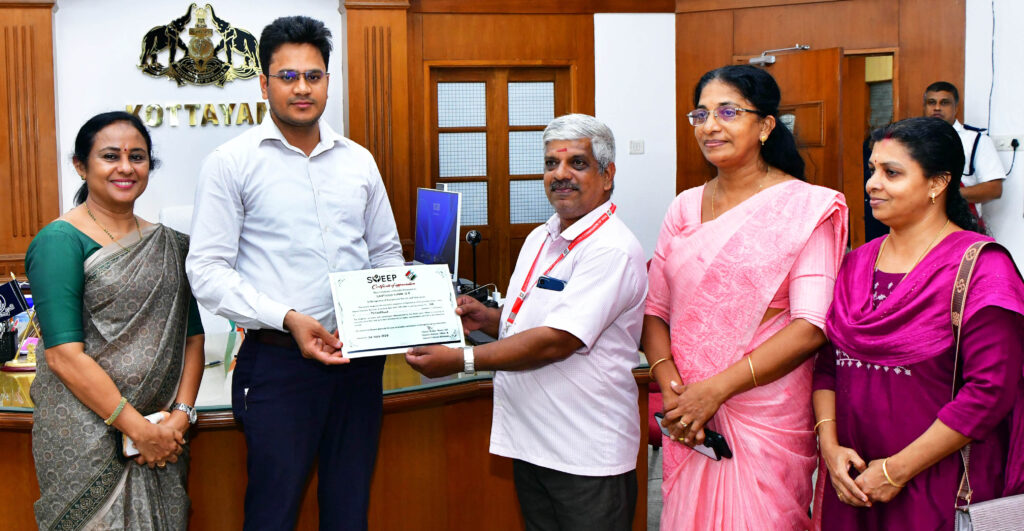 ലെവല്‍ ഓഫീസര്‍ക്ക് ജില്ലാ തെരഞ്ഞെടുപ്പ് ഓഫീസറുടെ ആദരം. പുതുപ്പള്ളി
