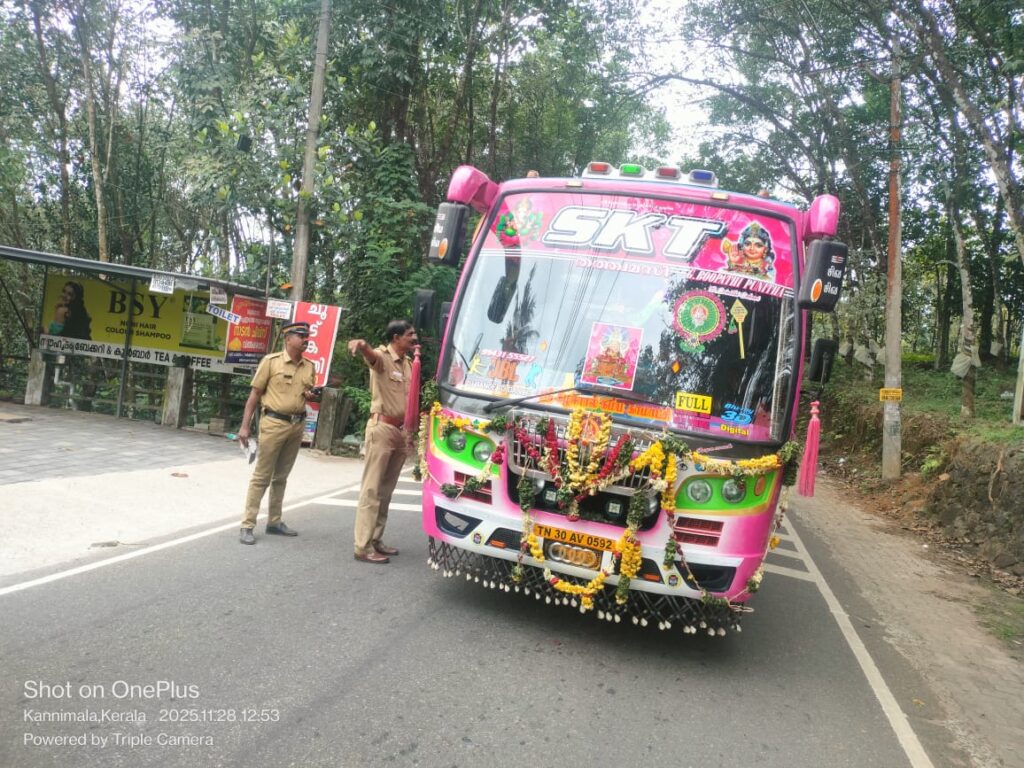ശബരിമല :സേഫ് സോൺ 2025 ന്റെ ഭാഗമായി സ്ഥിരമായി അപകടങ്ങൾ ഉണ്ടാകുന്ന കണ്ണിമല, കണമല എന്നീ ഭാഗങ്ങളിൽ അയ്യപ്പ ഭക്തരുമായി വരുന്ന ഡ്രൈവർമാർക്ക് സുരക്ഷിതയാത്രാ മുന്നറിയിപ്പ് നൽകുന്നതിനായി വിവിധഭാഷകളിൽ അച്ചടിച്ച നോട്ടീസുകൾ വിതരണം ചെയ്തു. തമിഴ്, തെലുങ്ക് , കന്നട , ഹിന്ദി, ഇംഗ്ലീഷ്, മലയാളം എന്നീ ഭാഷകളിൽ ആണ് നോട്ടീസ് വിതരണം നടത്തിയത്. ശബരിമല റോഡുകൾ കൊടുംവളവുകളും വലിയ കയറ്റങ്ങളും ഇറക്കങ്ങളും ആയതിനാൽ വാഹനത്തിൻ്റെ വേഗത കുറച്ചു ഫസ്റ്റ് അല്ലെങ്കിൽ സെക്കന്റ്‌ ഗിയറുകളിൽ മാത്രമേ വാഹനം ഓടിക്കുവാൻ പാടുള്ളു എന്ന സന്ദേശമാണ് ഡ്രൈവർമാർക്ക് നോട്ടീസ് വിതരണം ചെയ്തതിലൂടെ എരുമേലി സേഫ് സോൺ ടീം നടപ്പിലാക്കിയത്. വരും ദിവസങ്ങളിലും ഈ ബോധവത്കരണ പരിപാടി തുടരുന്നതാണ് എന്ന് സേഫ് സോൺടീം അറിയിച്ചു. കൂടാതെ എരുമേലി പ്രദേശത്തുള്ള പാർക്കിംഗ് ഗ്രൗണ്ടുകളിലും നോട്ടീസ് വിതരണവും ബോധവത്കരണവും നടത്തുകയും ചെയ്തു. സേഫ് സോൺ ടീമിനോടൊപ്പം പോലീസും ഈ ബോധവത്കരണ പരിപാടിയിൽ സജീവമായി പങ്കെടുത്തു. എരുമേലി സേഫ് സോൺ കണ്ട്രോൾ റൂം എംവിഐ ജയപ്രകാശ് ബി, മനോജ് കുമാർ, ജോണി തോമസ്, ബിജു എഎംവിഐ മാരായ രാജേഷ് എം സ്, വിഷ്ണു ജെ നായർ , ജിതിൻ എസ്, രോഹിത് എസ്, മാനവ് സതീഷ്, സേഫ് സോൺ പെട്രോളിങ്ങിനായി എത്തിച്ചേർന്ന വിവിധ ഓഫീസുകളിലെ എ എം വി ഐ മാർ താത്കാലിക ഡ്രൈവർമാർ എന്നിവർ പങ്കെടുത്തു