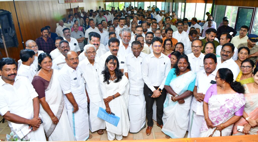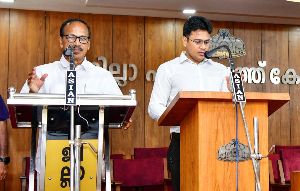 കോട്ടയം: കോട്ടയം ജില്ലാ പഞ്ചായത്തിലെ പുതിയ അംഗങ്ങള് സത്യപ്രതിജ്ഞ ചെയ്തു. ജില്ലാ പഞ്ചായത്ത് ഓഡിറ്റോറിയത്തില് നടന്ന ചടങ്ങില് മുതിര്ന്ന അംഗം തോമസ് കുന്നപ്പള്ളിക്ക് വരണാധികാരിയായ ജില്ലാ കളക്ടര് ചേതന്കുമാര് മീണ ആദ്യം സത്യപ്രതിഞ്ജ ചോല്ലിക്കൊടുത്തു. തുടര്ന്ന് മറ്റ് അംഗങ്ങള്ക്ക് തോമസ് കുന്നപ്പള്ളി പ്രതിജ്ഞ ചൊല്ലിക്കൊടുത്തു. ഫ്രാന്സിസ് ജോര്ജ് എം.പി, തിരുവഞ്ചൂര് രാധാകൃഷ്ണന് എം.എല്.എ, അഡീഷണല് ജില്ലാ മജിസ്ട്രേറ്റ് എസ്. ശ്രീജിത്ത് തുടങ്ങിയവര് സന്നിഹിതരായിരുന്നു,തോമസ് കുന്നപ്പള്ളിയുടെ അധ്യക്ഷതയില് ആദ്യ കൗണ്സില്യോഗം ചേര്ന്നു. പ്രസിഡന്റ് തെരഞ്ഞെടുപ്പ് 27ന്………………………ജില്ലാ പഞ്ചായത്ത് പ്രസിഡന്റ്,വൈസ് പ്രസിഡന്റ് തെരഞ്ഞെടുപ്പുകള് ഡിസംബര് 27ന് നടക്കും. ജില്ലാ പഞ്ചായത്ത് കൗണ്സില് ഹാളില് രാവിലെ 10.30നാണ് പ്രസിഡന്റ് തെരഞ്ഞെടുപ്പ്. വൈസ് പ്രസിഡന്റ് തെരഞ്ഞെടുപ്പ് ഉച്ചകഴിഞ്ഞ്2.30ന് നടക്കും………..ഫോട്ടോ : കോട്ടയം ജില്ലാ പഞ്ചായത്തംഗങ്ങളുടെ സത്യപ്രതിജ്ഞാ ചടങ്ങിന് തുടക്കം കുറിച്ച് വരണാധികാരിയായ ജില്ലാ കളക്ടര് ചേതന് കുമാര് മീണ ഏറ്റവും മുതിര്ന്ന അംഗം തോമസ് കുന്നപ്പള്ളിക്ക് പ്രതിജ്ഞ ചൊല്ലിക്കൊടുക്കുന്നു .മുതിര്ന്ന അംഗം തോമസ് കുന്നപ്പള്ളിയുടെ അധ്യക്ഷതയില് ചേര്ന്ന കോട്ടയം ജില്ലാ പഞ്ചായത്തിന്റെ ആദ്യ യോഗം.സത്യപ്രതിജ്ഞ ചെയ്ത കോട്ടയം ജില്ലാ പഞ്ചായത്തംഗങ്ങള് ഫ്രാന്സീസ് ജോര്ജ് എം.പി, തിരുവഞ്ചൂര് രാധാകൃഷ്ണന് എം.എല്.എ, വരണാധികാരിയായ ജില്ലാ കളക്ടര് ചേതന്കുമാര് മീണ തുടങ്ങിയവര്ക്കൊപ്പം.