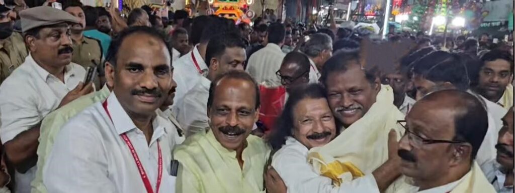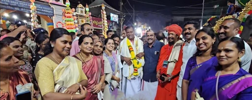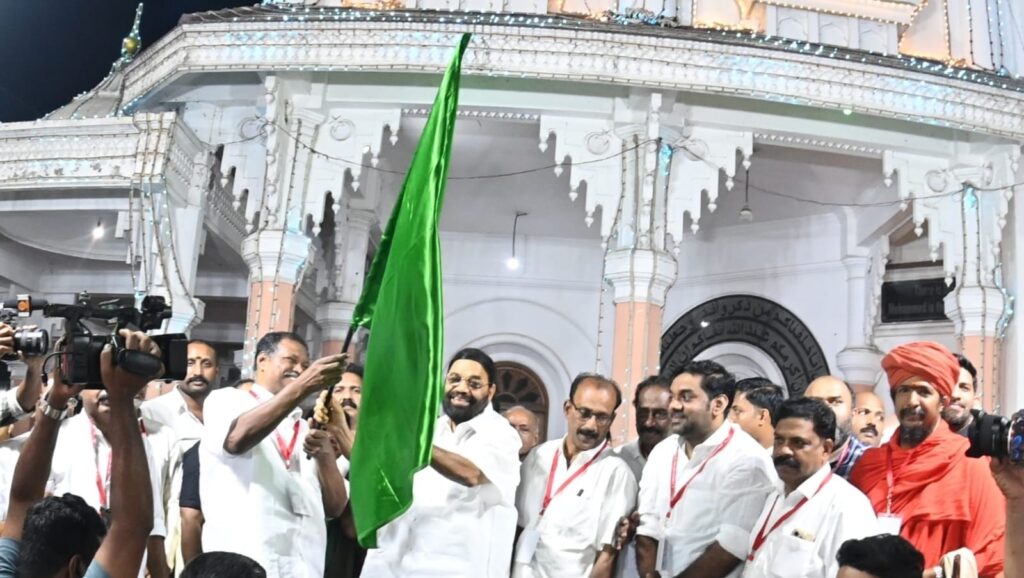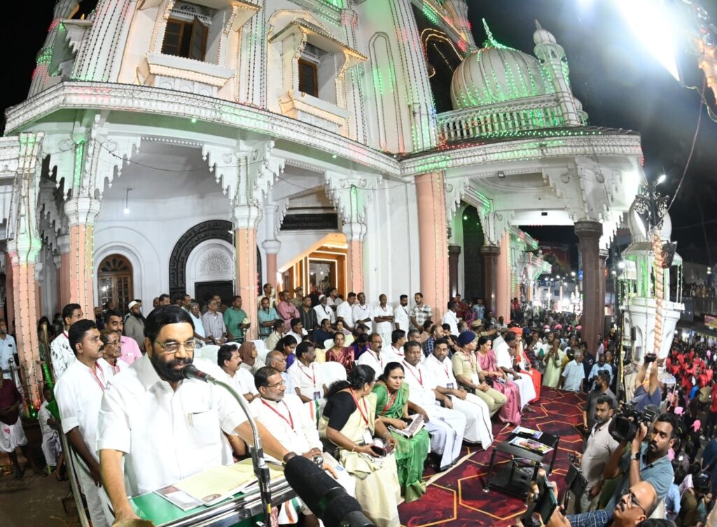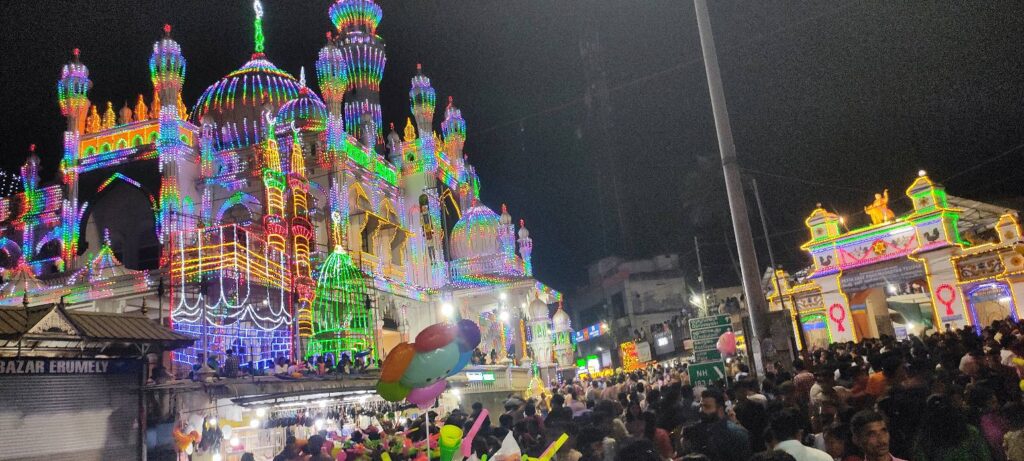 എരുമേലി :എരുമേലിയിൽ ചന്ദനക്കുടത്തിന്റെ പൂരംപെയ്തിറങ്ങിയ സന്ധ്യയാണ് കണ്ടുകൊണ്ടിരിക്കുന്നത് .മുമ്പെങ്കും ഉണ്ടാകാത്ത ജനക്കൂട്ടം ചന്ദനക്കുടരാവിനെ നെഞ്ചോടേറ്റിയ കാഴ്ചയാണ് കണ്ടത് . എരുമേലി ചന്ദനക്കുടം പൊതുസമ്മേളനം പള്ളി അങ്കണത്തിൽ മന്ത്രി വി.എൻ. വാസവൻ ഉദ്ഘാടനം ചെയ്ത്, ചന്ദനക്കുടം ഘോഷയാത്ര ഫ്ലാഗ് ഓഫ് ചെയ്തു . മഹല്ലാ ജമാ അത്ത് പ്രസിഡന്റ്റ് നാസർ പനച്ചി അധ്യക്ഷത വഹിച്ചു. നേരത്തെ ആന്റോ ആന്റണി എം പി അമ്പലപ്പുഴ പേട്ട സംഘവും എരുമേലി മഹല്ലാ ജമാ അത്തും മത-സാമുദായിക നേതാക്കളുമായുള്ള ചേർന്നുളള സൗഹൃദ സംഗമം പള്ളി ഓഡിറ്റോറിയത്തിൽഉദ്ഘാടനം ചെയ്തു . ജമാ അത്ത് സെക്രട്ടറി മിഥുലാജ് മുഹമ്മദ് പൊതുസമ്മേളനത്തിന് സ്വാഗതമാശംസിച്ചു .അമ്പലപ്പുഴ സംഘം .സമൂഹപെരിയോൻ എൻ ഗോപാലകൃഷ്ണപിള്ള,സ്വാമി ആത്മദാസ് ,സ്വാമി ദത്താത്രേയ സ്വരൂപ് , അഡ്വ സെബാസ്റ്റ്യൻ കുളത്തുങ്കൽ എം എൽ എ ,ജില്ലാ കളക്ടർ ചേതനകുമാർ മീണ ,ജില്ലാ പോലീസ് മേധാവി ഷാഹുൽ ഹമീദ് ഐ പി എസ് ,ജില്ലാ പഞ്ചായത്ത് അംഗം ആശ ജോയി ,എരുമേലി പഞ്ചായത്ത് പ്രസിഡന്റ് അമ്പിളി സജീവൻ ,എരുമേലി ഫൊറോനാ വികാരി റെവ ഫാ .വർഗീസ് പുതുപ്പറമ്പിൽ,ഉൾപ്പെടെ വിവിധ മത സമൂഹിക സാംസ്കാരിക ജന നേതാക്കൾ പ്രസംഗിച്ചു .മഹല്ലാ മുസ്ലിം ജമാഅത്ത് പ്രസിഡന്റ് നാസർപനച്ചി , ജമാഅത്ത് സെക്രട്ടറി മിഥുലാജ് പുത്തൻവീട്, ട്രഷറർ നൗഷാദ് കുറുങ്കാട്ടിൽ, വൈസ്പ്രസിഡന്റ് സലീം കണ്ണങ്കര,ജോ.സെക്രട്ടറി നിഷാദ്, ചന്ദനക്കുടം കമ്മിറ്റി കൺവീനർ നൈസാം.പി.അഷറഫ് പുത്തൻവീട്, ഹക്കീംമാടത്താനി, അനസ് പുത്തൻ വീട്, ഷഹനാസ് മേക്കൽ, അബ്ദുൽ നാസർ ചക്കാലക്കൽ, മുഹമ്മദ് ഷിഫാസ് കിഴക്കേതിൽ, സി എ എം കരിം ,അൻസാരി പാടിക്കൽ എന്നിവർ നെത്ര്വതം നൽകി .ബ്ലോക്ക് പഞ്ചായത്ത് അംഗങ്ങളായ പ്രകാശ് പുളിക്കൻ ,ബിനു മറ്റക്കര ,രവീന്ദ്രൻ എരുമേലി ,റജി അമ്പാറ , ത്രിതല പഞ്ചായത്ത് അംഗങ്ങൾ ,വിവിധ സംഘടനകൾ ,വകുപ്പുകൾ എന്നിവർ ചന്ദനക്കുടാ ഘോഷയാത്രയെ സ്വീകരിച്ചു .നെറ്റിപ്പട്ടം കെട്ടിയ ഗജവീരന്മാർ. ചെണ്ടമേളം, ശിങ്കാരിമേളം, ജിണ്ട് കാവടി നിലക്കാവടി തമ്പോലം പോപ്പർ ഇവൻ്റ് എന്നിവ ചന്ദനക്കുടത്തിന് മാറ്റുകൂട്ടി .ചന്ദനക്കുടം ഘോഷയാത്രയ്ക്ക് കൊച്ചമ്പലത്തിന് മുന്നിൽ പേട്ടക്കവലയിൽ ജില്ലാ ഭരണകൂടത്തിന്റെയും റവന്യു വകുപ്പിന്റെയും പഞ്ചായത്തിന്റെയും നേതൃത്വത്തിൽ സ്വീകരണം നൽകി. വ്യാപാരി വ്യവസായി സംഘടനകളും പോലീസ്, ആരോഗ്യ, എക്സൈസ് വകുപ്പുകളും സ്വീകരണം നൽകി. രാജാപ്പടിയിൽ കെഎസ്ആർടിസി അധികൃതരും ഡ്രൈവേഴ്സ് യൂണിയനും കെഎസ്ഇബി സെക്ഷൻ ഓഫീസും നൽകിയ സ്വീകരണത്തിന് ശേഷം വലിയമ്പലത്തിൽ ദേവസ്വം ബോർഡിന്റെ നേതൃത്വത്തിൽ ഘോഷയാത്രയെ സ്വീകരിച്ചു
