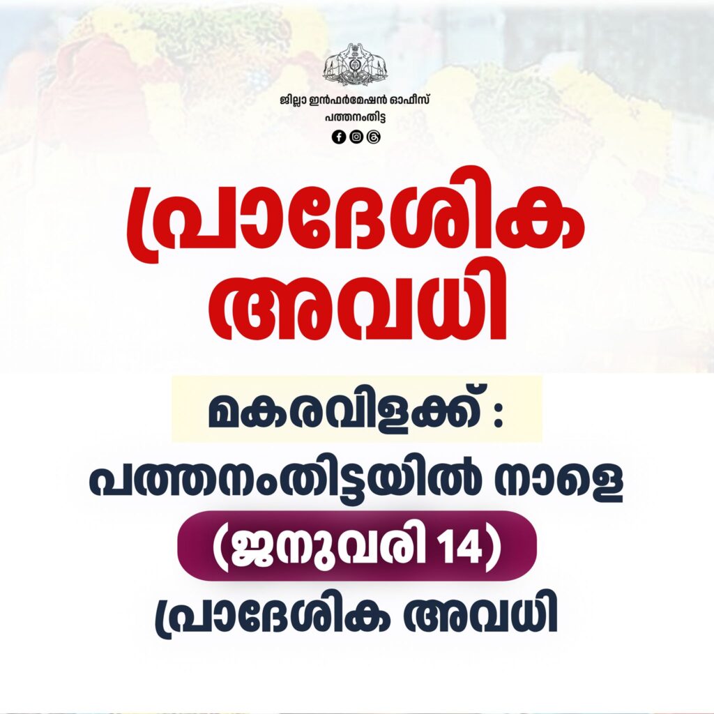മകരവിളക്ക് : പത്തനംതിട്ടയിൽ നാളെ(ജനുവരി 14) പ്രാദേശിക അവധി