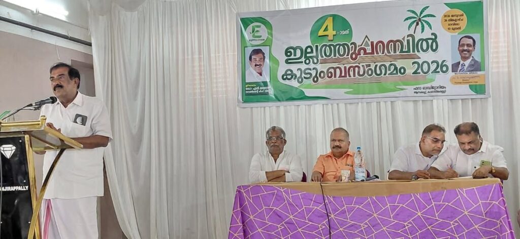 കാഞ്ഞിരപ്പള്ളി :ഇല്ലത്തു പറമ്പിൽ കുടുംബ കൂട്ടായ്മയുടെ നാലാമത് വാർഷികം കാഞ്ഞിരപ്പള്ളി ആനക്കല്ല് ഫറാ ഓഡിറ്റോറിയത്തിൽ നടന്നു.ഗവ.ചീഫ് വിപ്പ് ഡോ: എൻ ജയരാജ് ഉൽഘാടനം ചെയ്തു.പ്രസിഡണ്ട് ഗഫൂർ ഇല്ലത്തുപറമ്പിൽ അധ്യക്ഷനായി. ഇക്ബാൽ ഇല്ലത്തു പറമ്പിൽ, നജീബ് ഇല്ലത്തു പറമ്പിൽ, യാസർ അൻസാർ എന്നിവർ സംസാരിച്ചു.വിവിധ രംഗങ്ങളിൽ വ്യക്തിമുദ്ര പതിപ്പിച്ച ഇക്ബാൽ ഇല്ലത്തു പറമ്പിൽ (ദേശാഭിമാനി ), ബിസിനസ്സുകാരായ നജീബ് ഇല്ലത്തുപറമ്പിൽ, ഗഫൂർ ഇല്ലത്തുപറമ്പിൽ എന്നിവരെ ചീഫ് വിപ്പ് മെമൻ റ്റോ നൽകി ആദരിച്ചു.വിവിധ കലാപരിപാടികളുo മൽസരങ്ങളും ഉണ്ടായിരുന്നു.