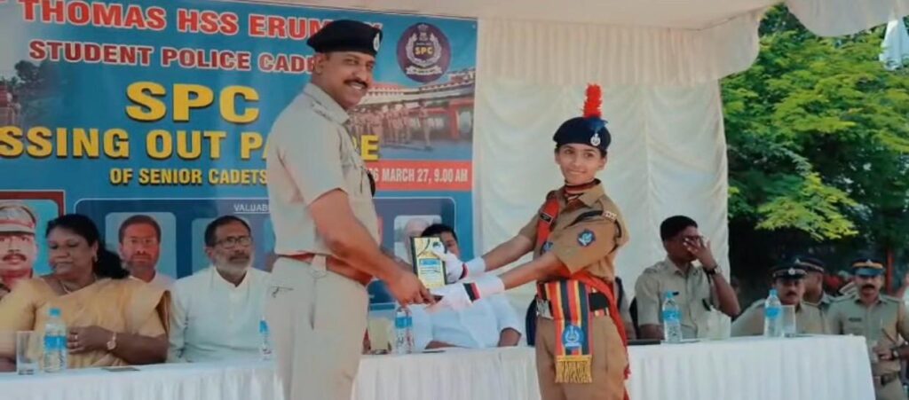 എരുമേലി: സെന്റ്.തോമസ് ഹയർ സെക്കണ്ടറി സ്കൂളിൽ സ്റ്റുഡന്റ്സ് പോലിസ് കേഡറ്റുകളുടെ പാസിംഗ് ഔട്ട് പരേഡ് നടന്നു കാഞ്ഞിരപ്പള്ളി ഡിവൈഎസ്പി വിശാൽ ജോൺസൺ സല്യൂട്ട് സ്വീകരിച്ചു. എരുമേലി പോലീസ് സ്റ്റേഷൻ സബ് ഇൻസ്പെക്ടർ സി എസ് നെൽസൺ സത്യപ്രതിജ്ഞ ചൊല്ലിക്കൊടുത്തു. സ്കൂൾ മാനേജർ റവ. ഫാദർ വർഗീസ് പുതുപ്പറമ്പിൽ, എസ്പിസി കോട്ടയം ജില്ലാ നോഡൽ ഓഫീസർ കെ. രാജേഷ്, പ്രിൻസിപ്പൽ റോയ് സ്കറിയ, ഹെഡ്മിസ്ട്രസ് രേഖ മാത്യൂസ്, പിറ്റിഎ പ്രസിഡന്റ് മാർട്ടിൻ സി ചാണ്ടി എന്നിവർ പങ്കെടുത്തു. എരുമേലി പോലീസ് സ്റ്റേഷനിലെ പോലീസ് ഉദ്യോഗസ്ഥരും ഡ്രിൽ ഇൻസ്ട്രക്ടർമാരുമായ അസി. സബ് ഇൻസ്പെക്ടർ സി എ ലേഖ, സിവിൽ പോലീസ് ഓഫീസർ കെ എ അബ്ദുൾ ജലീൽ, സ്കൂൾ എസ്പിസി കമ്മ്യൂണിറ്റി പോലീസ് ഓഫീസർ ലിറ്റി. കെ. മാത്യു എന്നിവർ നേതൃത്വം നൽകി. അധ്യാപകരും മാതാപിതാക്കളും വിദ്യാർത്ഥികളും ഉൾപ്പടെ നിരവധി പേർ പങ്കെടുത്തു.
