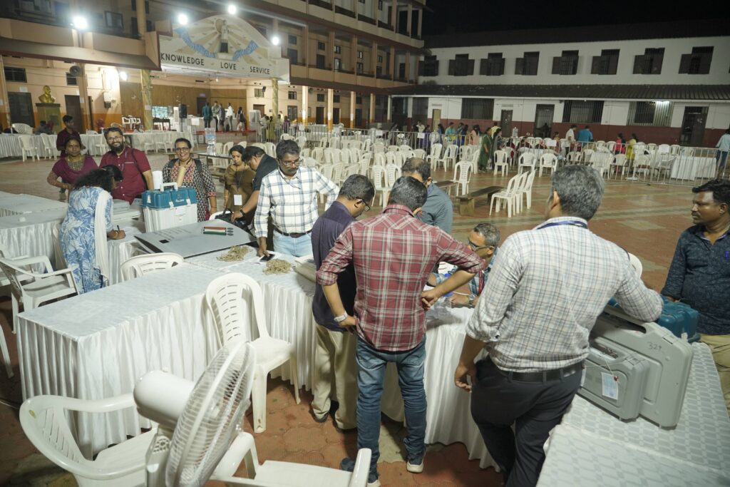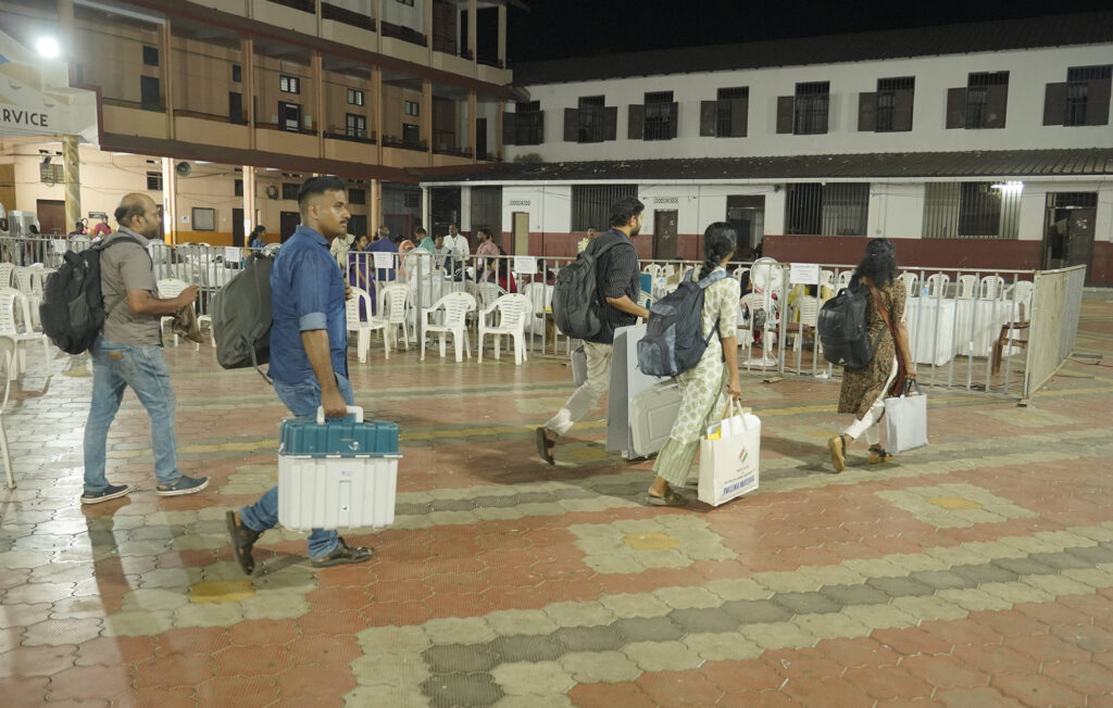 പോളിംഗിനുശേഷം ഏറ്റുമാനൂർ നിയോജകമണ്ഡലത്തിലെ കളക്ഷൻ സെന്ററായ അതിരമ്പുഴ സെന്റ് അലോഷ്യസ് ഹയർ സെക്കൻഡറി സ്കൂളിൽ വോട്ടിംഗ് യന്ത്രങ്ങളും പോളിംഗ് സാമഗ്രികളും തിരികെയെത്തിക്കുന്ന ഉദ്യോഗസ്ഥർ.
